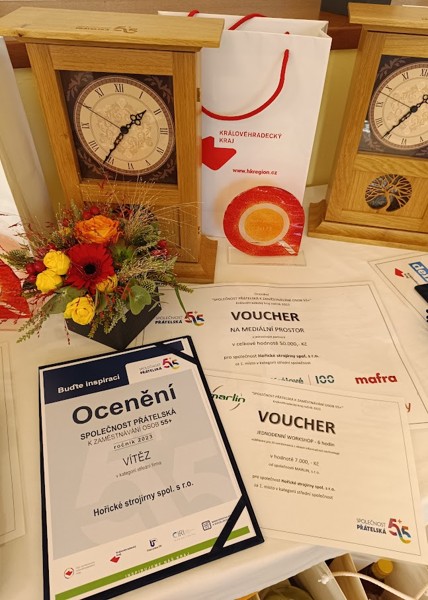 3. října proběhlo v Hradci Králové vyhlášení vítězů soutěže Společnost přátelská k zaměstnávání osob 55+, kde Hořické strojírny
