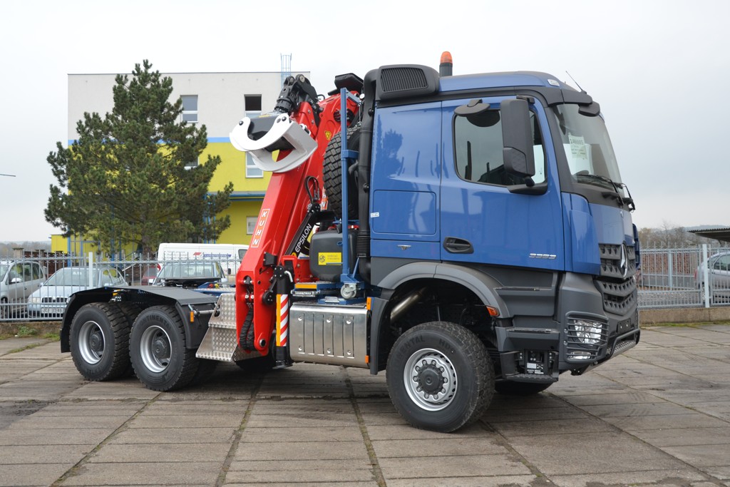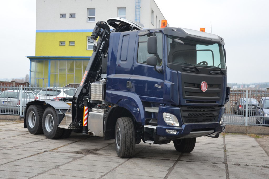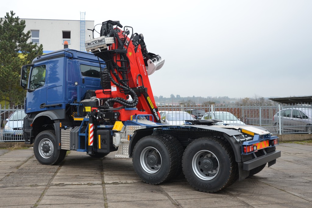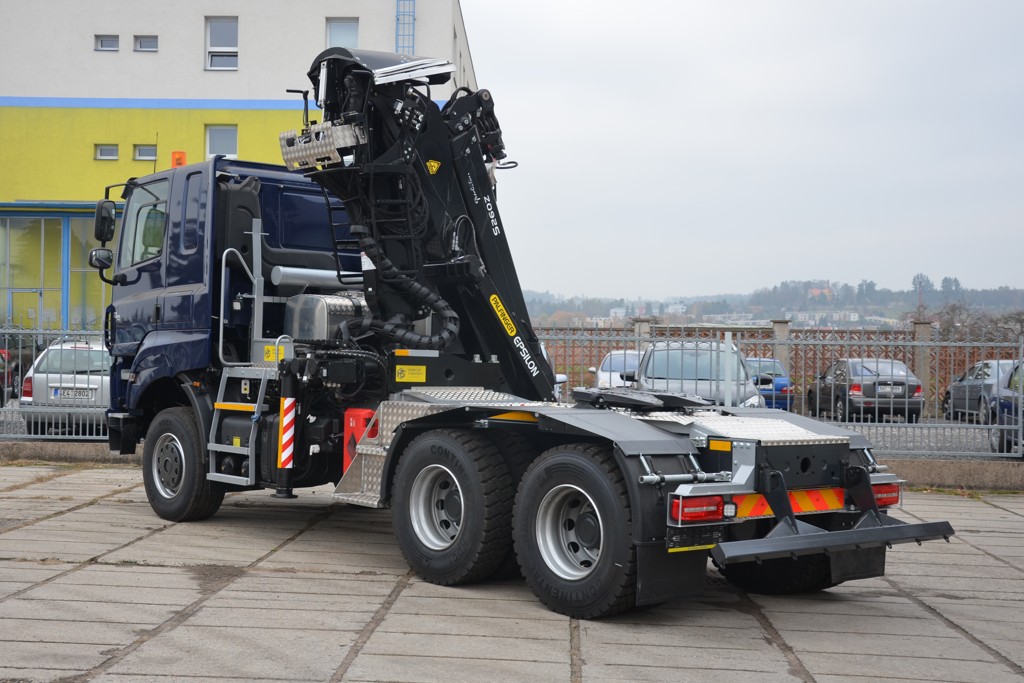 Nákladní automobil s jeřábem umístěným za kabinou určený především jako tažné vozidlo návěsů.